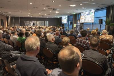 Ted Swinkels, directeur van Cefetra in Rotterdam, schetste een actueel beeld van de ontwikkelingen en verwachtingen in de wereldwijde markt van grondstoffen en energie. Zowel de agrarische ondernemers als AR ervaren dagelijks de gevolgen van de turbulente grondstoffenmarkt. Ted sprak in zijn verhaal over ‘the perfect storm’. Deze wordt onder andere veroorzaakt door de situatie in Oekraïne, slechte groeiomstandigheden in andere delen van de wereld, de toegenomen vraag naar grondstoffen vanuit China en de toenemende vraag naar biofuel. Al deze ontwikkelingen zorgen ervoor dat de grondstoffenprijzen geëxplodeerd zijn. Fondsen die handelen in contracten van grondstoffen zoals tarwe drijven deze prijzen verder op. De Green Deal en de Farm to Fork-strategie die vanuit duurzaamheidsoogpunt zijn opgericht leiden er juist toe dat er in Europa minder grondstoffen verbouwd kunnen worden en er dus meer veevoergrondstoffen geïmporteerd moeten worden. Ted vroeg zich oprecht af of dit past bij de huidige situatie in de wereld waarin hongersnood dreigt.