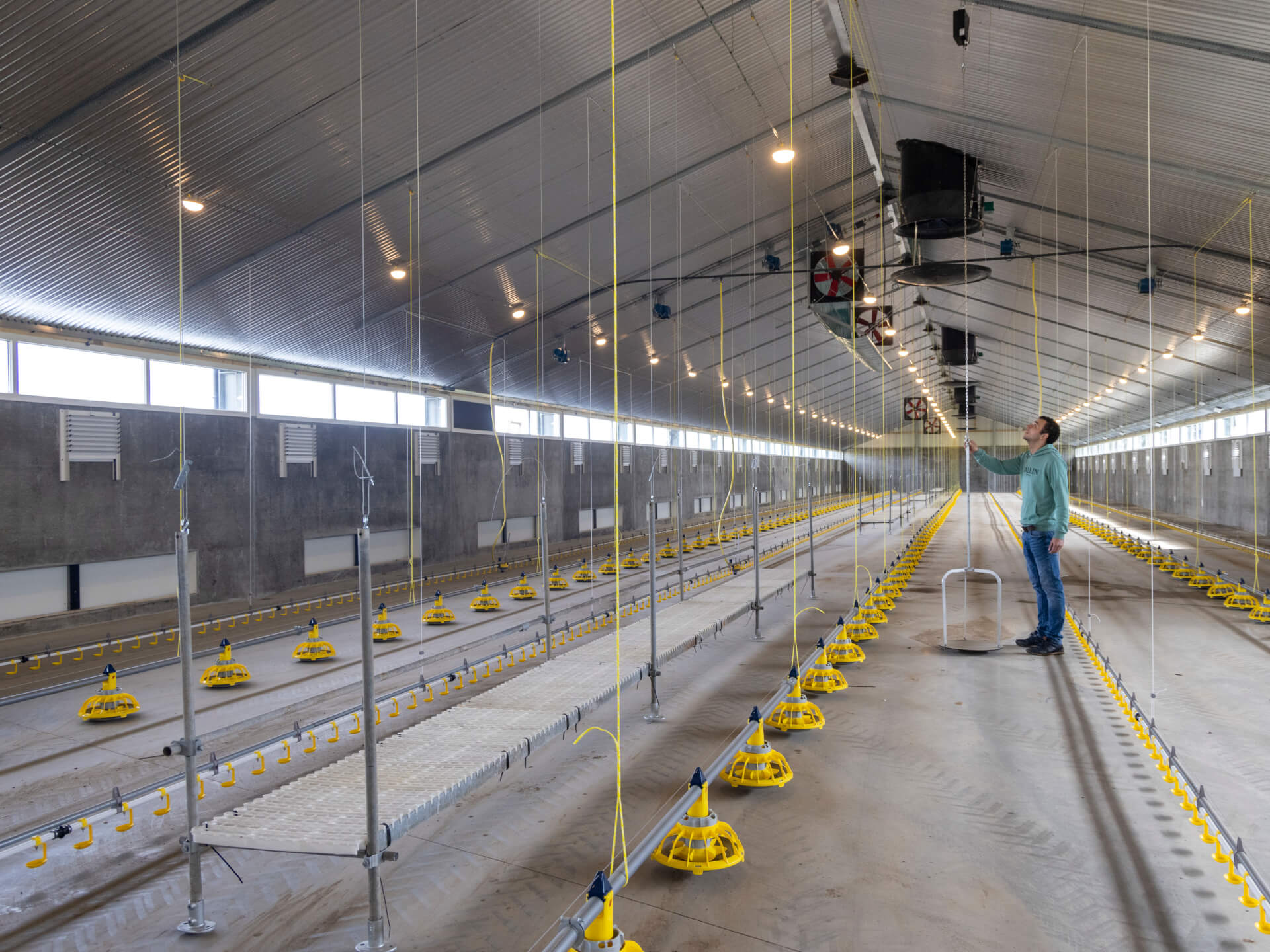 De moderne nieuwe stal heeft een oppervlakte van 1.600 m2 en biedt plaats aan 13.000 biologische vleeskuikens. Sander van Leeuwen licht de keuze voor biologische vleeskuikens toe. “Door naast varkens ook biologische vleeskuikens te gaan houden spreiden we de risico’s. Daarnaast is kippenvlees hét vlees van de toekomst. Het is makkelijk en snel te bereiden en het is lekker en veelzijdig. Biologisch heeft een goed imago, dit in tegenstelling tot de gangbare varkens die we ook hebben. Er is veel vraag naar biologische kippen uit Nederland. Hierdoor is de prijs al langere tijd en waarschijnlijk ook in de toekomst goed.”