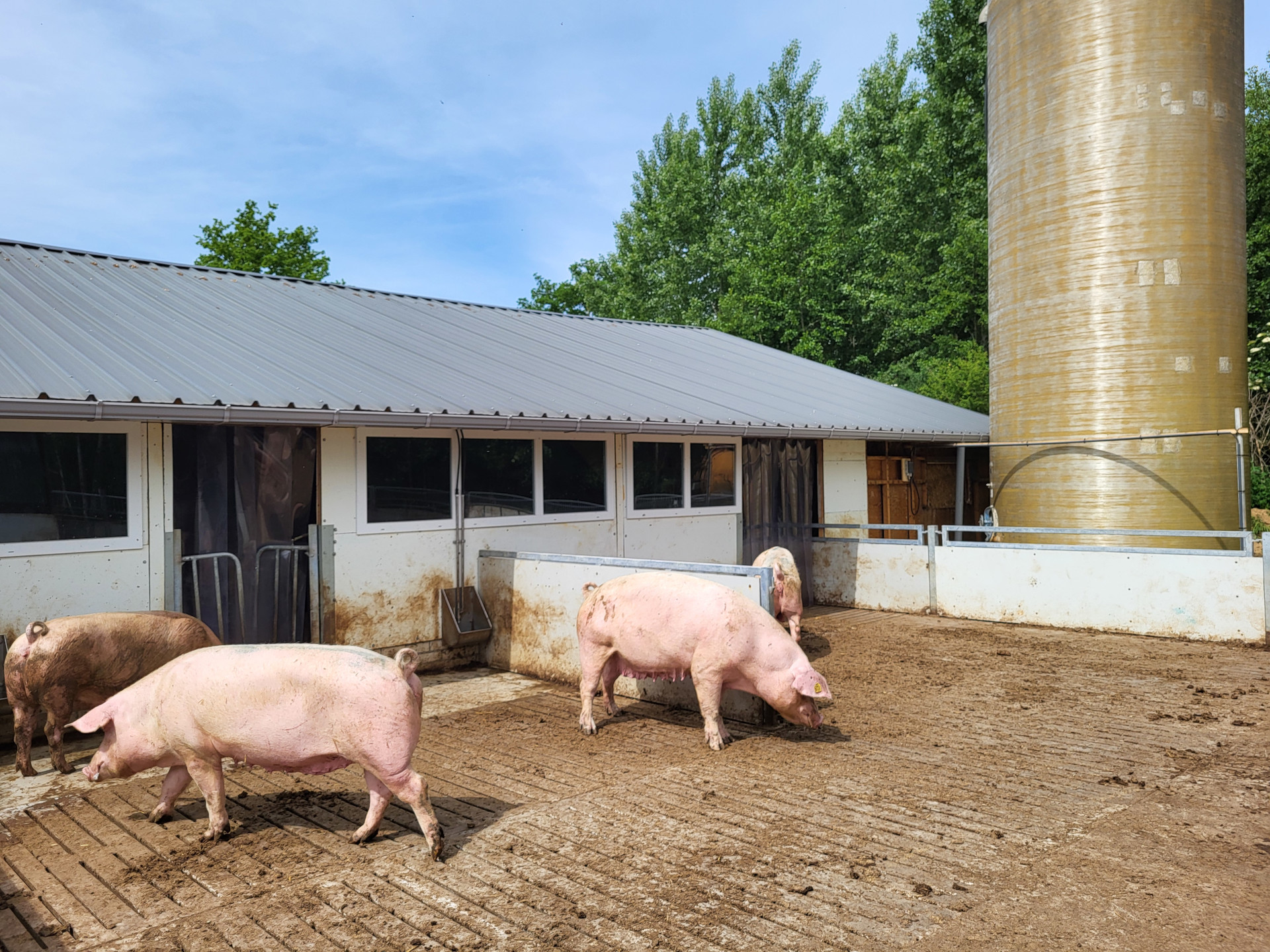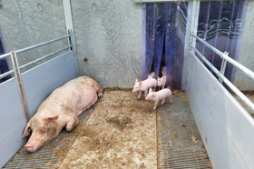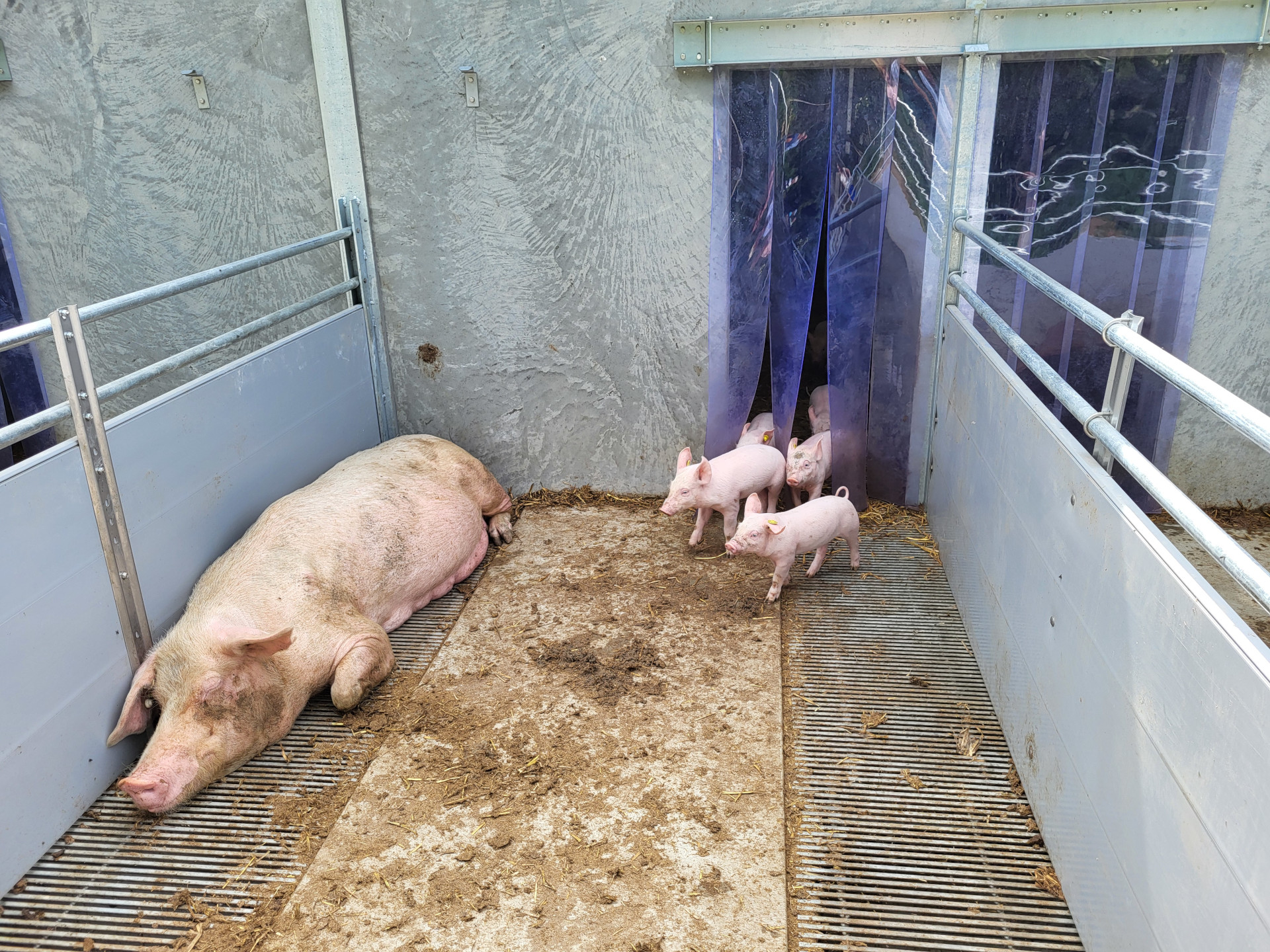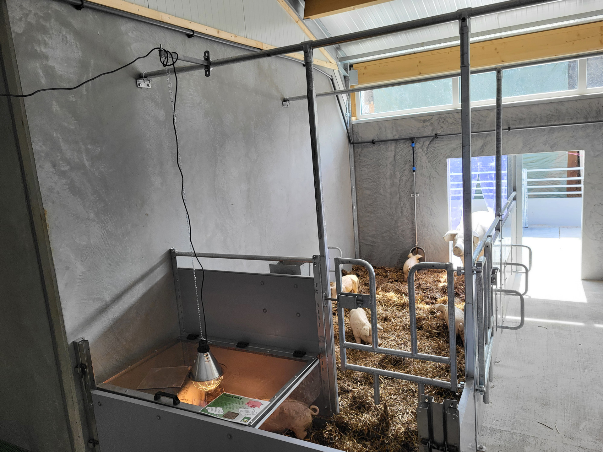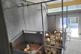 - Nieuwe stal voor zogende zeugen met kraamopfokhokken waarbij de biggen na het spenen in hetzelfde hok blijven.