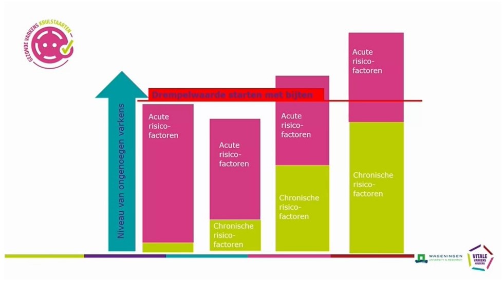 Onderzoeken tonen aan dat de MGBA het gedrag en de stemming van dieren kan beïnvloeden. Verstoringen in de darmen zorgen voor een ontregeling van de MGBA (de verbinding tussen de darmen en de hersenen). Dit kan leiden tot verhoogde chronische stress en ongenoegen bij het varken. Ook de bacteriën in de darmen hebben invloed op de directe en indirecte boodschappen aan de hersenen.