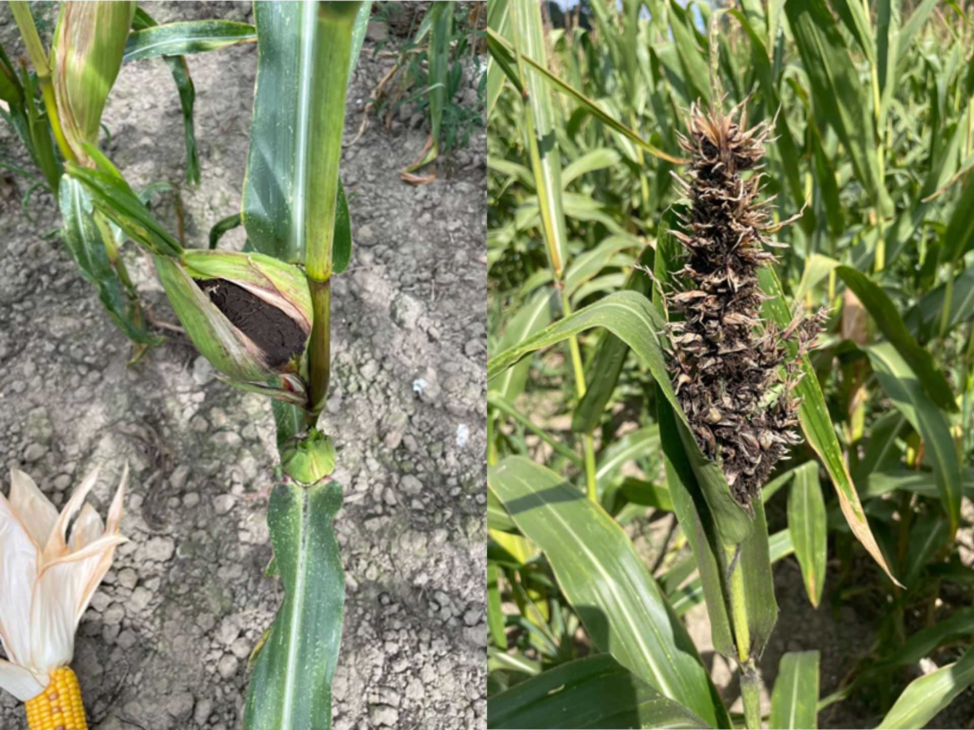 Daarnaast is de eerste kopbrandbesmetting in het veld gesignaleerd. Wees hier alert op bij de keuze van perceel en ras voor de komende jaren. Bij het hakselen is het verstandig om besmette percelen als laatste te oogsten, om verspreiding van de ziekte te voorkomen.