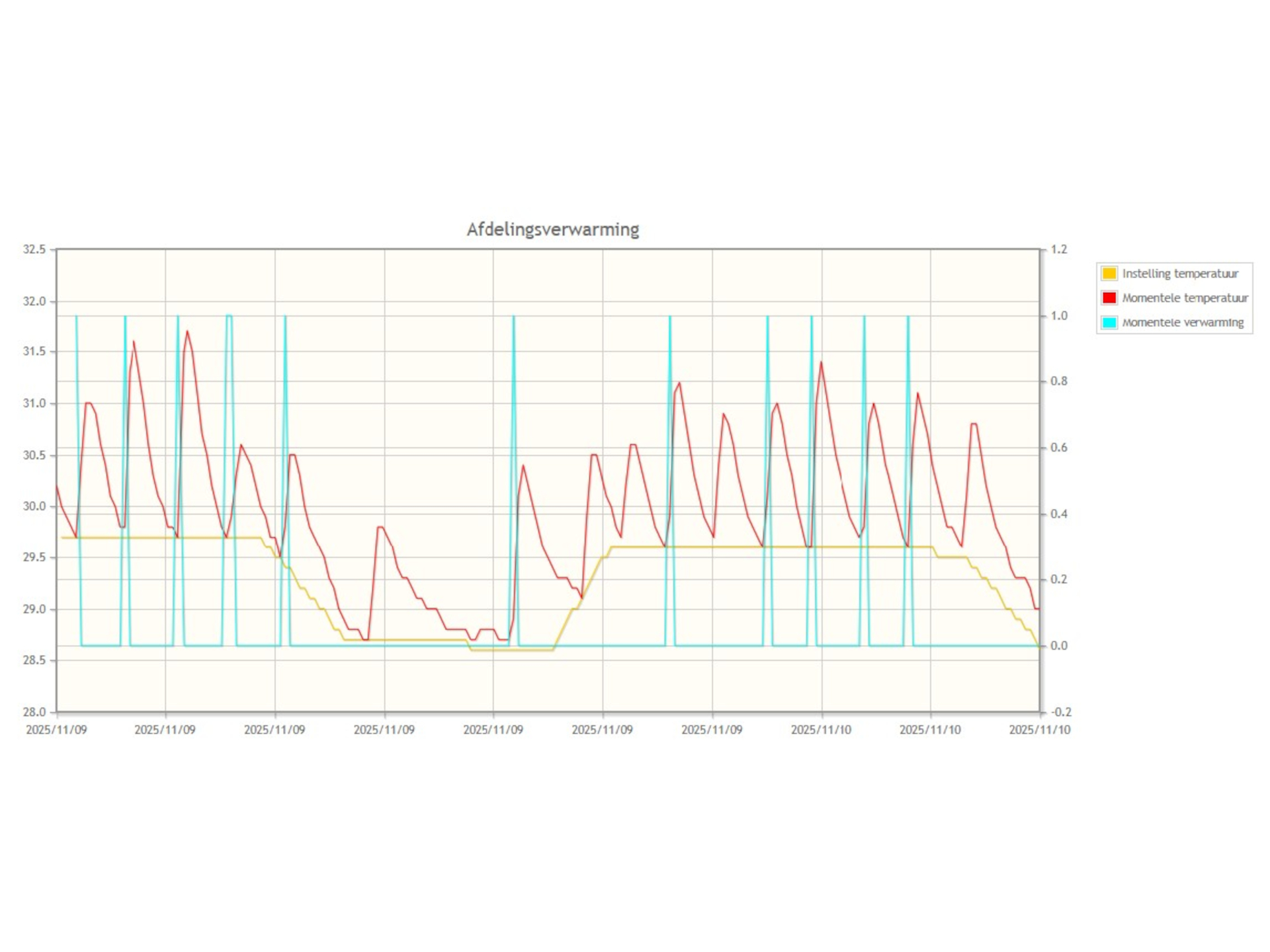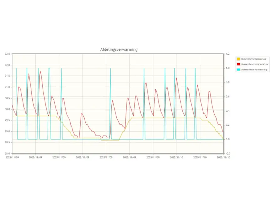 Een aan/uit-regeling schakelt de verwarming daarentegen volledig aan of uit. Dit zorgt voor grotere temperatuurverschillen, hogere pieken in energieverbruik en een minder rustig klimaat voor de biggen. Daarnaast kunnen componenten sneller slijten door het frequente schakelen.
