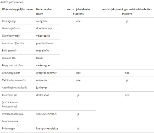 Het verbod geldt niet in situaties waarbij de toepassing van een gewasbeschermingsmiddel plaatsvindt op specifieke terreinen voor recreatieve doeleinden, of voor het beoefenen van sport die vanwege hun aard of omvang redelijkerwijze niet op een andere wijze kunnen worden onderhouden.