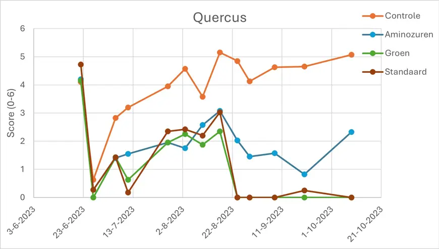 Er is gewerkt met een tweewekelijkse toepassing. De bomen werden geplant in 2022 en de metingen begonnen in het groeiseizoen van 2023. Het project loopt tot augustus 2026.