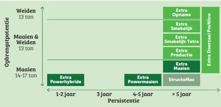 Ons ruwvoerteam stelt deze mengsels zelf samen. Dit pakket wordt jaarlijks bijgesteld. Hierbij kijken we of er verbeteringen mogelijk zijn en of er nieuwe rassen zijn die meerwaarde hebben.