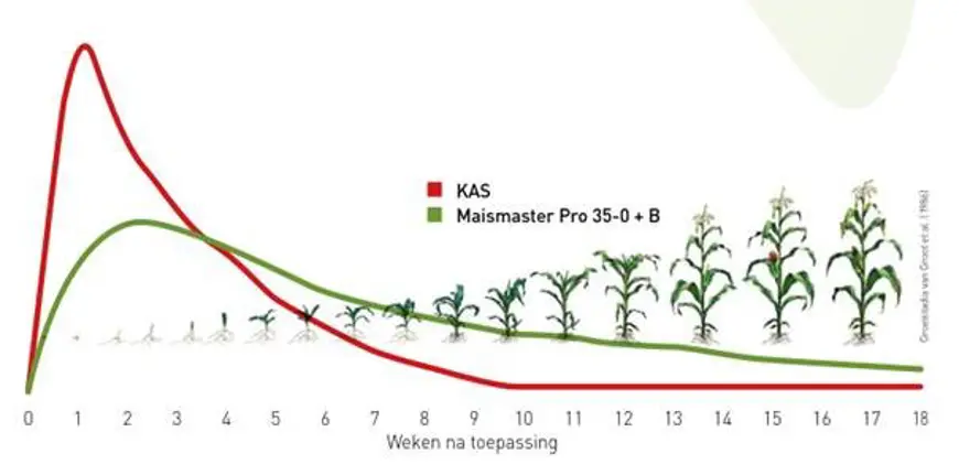 Bij AgruniekRijnvallei bieden we een breed assortiment Maismasters aan voor rijenbemesting in mais. Een goed voorbeeld hiervan is de Maismaster Pro 35-0+B, verrijkt met borium. De Maismaster Pro 35-0+B bevat 60–65% traag werkende stikstof. Deze stikstof komt vrij op het moment dat de maisplant het nodig heeft en zijn groeispurt begint. Daarnaast bevat deze meststof 35–40% snel beschikbare stikstof, die zorgt voor een vlotte en krachtige start van het jonge maisplantje. Dankzij de extreem lage zoutindex van deze kunstmest is het mogelijk om tot 200 kg per hectare in de rij toe te dienen, zonder risico op zoutschade aan het gewas. Dit maakt Maismaster Pro 35-0+B een uiterst efficiënte en veilige keuze voor een optimale start en groei van je maisgewas. In de teelt van mais is borium essentieel voor een goede kolfzetting. Met de Maismaster Pro 35-0+B wordt voldoende borium toegediend om volledig te voorzien in de boriumbehoefte van de maisplant.