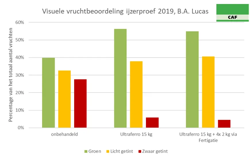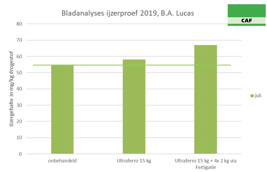 - toepassing 15 kg Ultraferro eind april met een vervolg via fertigatie (4 x 2 kg iedere 2 weken).