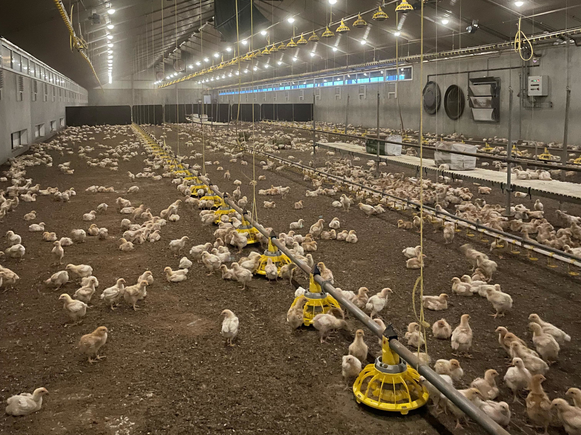 De bouw van de vleeskuikenstal heeft Sander als stressloos ervaren. “Ik stond volledig achter wat we gingen doen, had het van alle kanten goed voorbereid en de juiste mensen en gespecialiseerde bedrijven om me heen verzameld.” Ook de begeleiding vanuit AR bevalt heel goed. Anouk Hannink en Hans Ebbers, specialisten voor de biologische vleeskuikenhouderij, waren betrokken bij de opstart. “In het begin was het best wel intensief”, erkent Sander. “Je wilt graag dat het goed gaat. Ik heb veel gehad aan hun adviezen hoe ik dingen moest aanpakken. Want alles was nieuw voor me. Gewone praktische tips. Bijvoorbeeld hoe ik de stal moet klaarmaken voordat de kuikens gelost worden. Eerst de stal warmstoken en pas daarna het strooisel op de vloer. Niet andersom. En dat je de waterleiding moet doorspoelen vier uur voordat de kuikens komen, zodat het water niet te warm of te koud is. Hoe hoog de druk van de waterleiding moet zijn en hoe hoog hij moet hangen. En welke signalen de kuikens afgeven die ik moet zien op te pikken. Dat soort dingen. Ik had geen idee. Zij weten precies te vertellen hoe je dat moet aanpakken.”