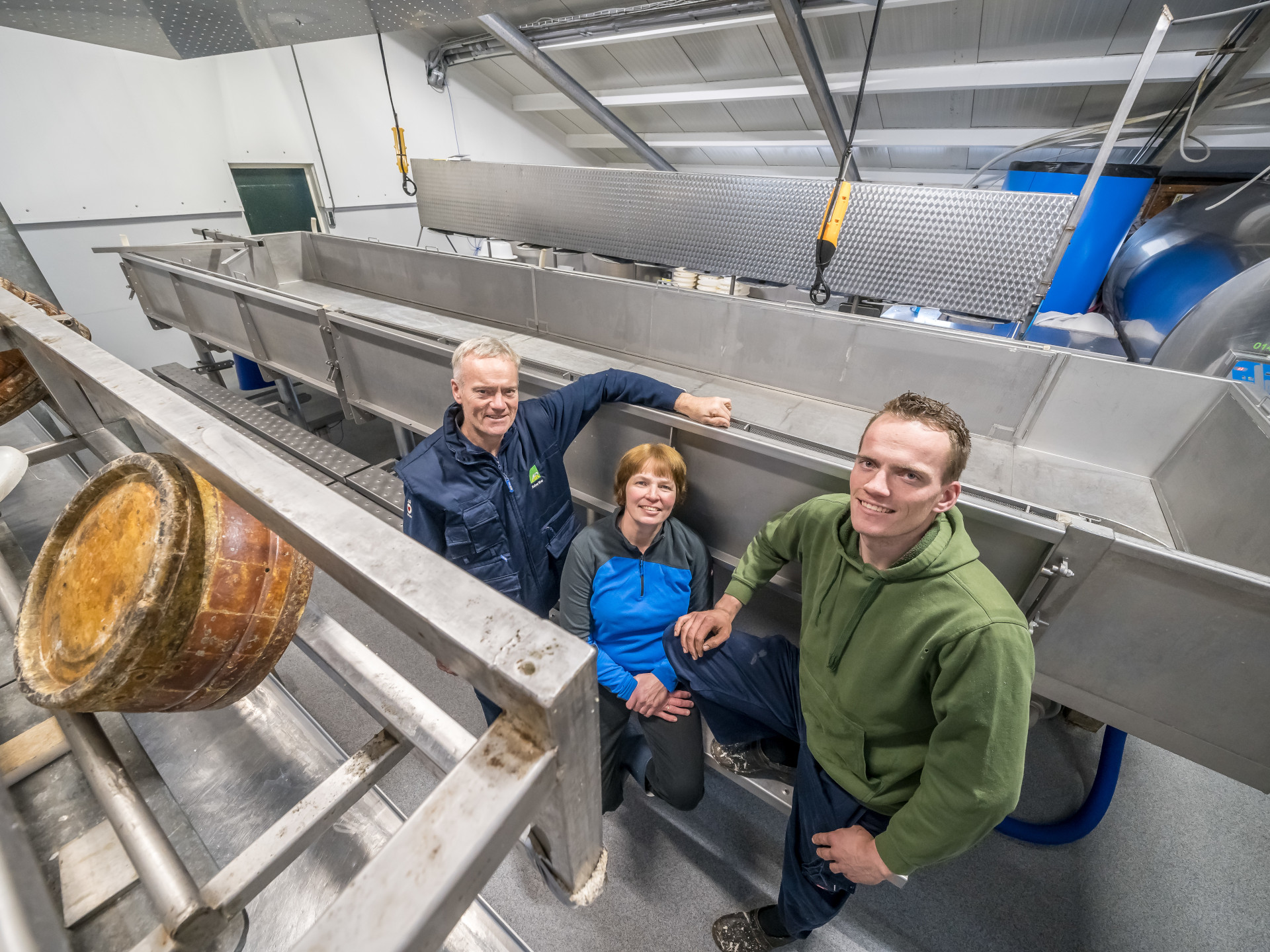 Tegelijk met de bouw van een nieuwe stal voor de koeien werd vorig jaar de capaciteit van de kaasmakerij verdubbeld. Kaas maken gebeurt om de dag. Wekelijks maken ze ongeveer 3.500 kilogram. Gerda begint daar rond 7.00 uur mee tot ongeveer 13.00 uur. De laatste twee uur helpt Harry haar. Het plastificeren en dagelijks keren doet een medewerker. Een andere medewerker doet het meeste werk in de varkensstallen, maar in de weekenden doet Harry daar alles. Harry, Gerda en Daniël beginnen ’s morgens om 5.00 uur en zijn meestal ’s avonds tegen 20.00 uur klaar. Harry: “’s Middags rusten we een half uur maar eigenlijk maken we twee werkdagen op een dag.”