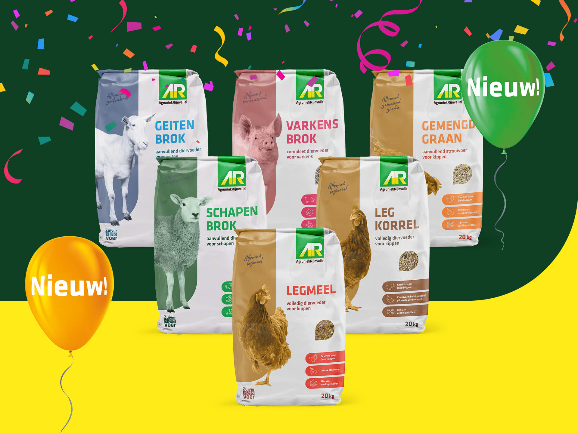 Of je nu varkens, geiten, kippen of schapen houdt: je wilt het beste voor je dieren. Daarom introduceert AR een nieuwe lijn erfdiervoeders. Samengesteld met zorg, boordevol voedingsstoffen én aantrekkelijk geprijsd. Want topkwaliteit hoeft niet duur te zijn. Onze voeders zijn niet alleen smakelijk – je dieren eten het graag – maar zijn ook duurzaam verpakt. Zo zorgen we samen voor blije dieren én een beter milieu.